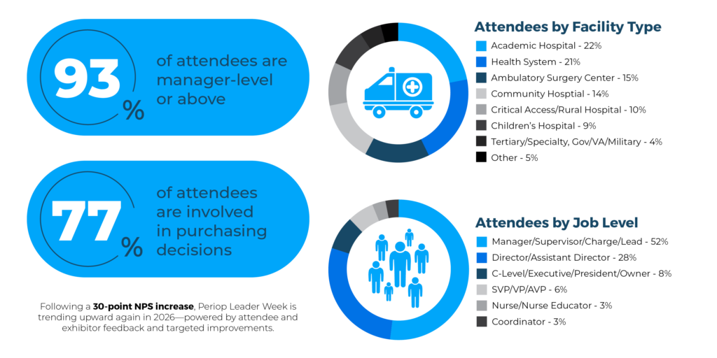 Periop Leader Week, formerly OR Manager Conference & OR Business Management Summit, is the only event designed specifically for perioperative decision-makers across hospitals, health systems, ambulatory surgery centers, and surgical business operations.