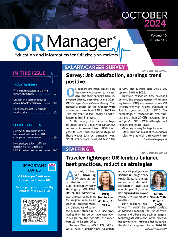 As perioperative nurse leaders, you are no strangers to change. Healthcare is constantly evolving, and with it, so are the demands on surgical teams and leadership. At OR Manager, we are committed to growing alongside you. As a trusted source for operational and business insights, our role is to adapt…