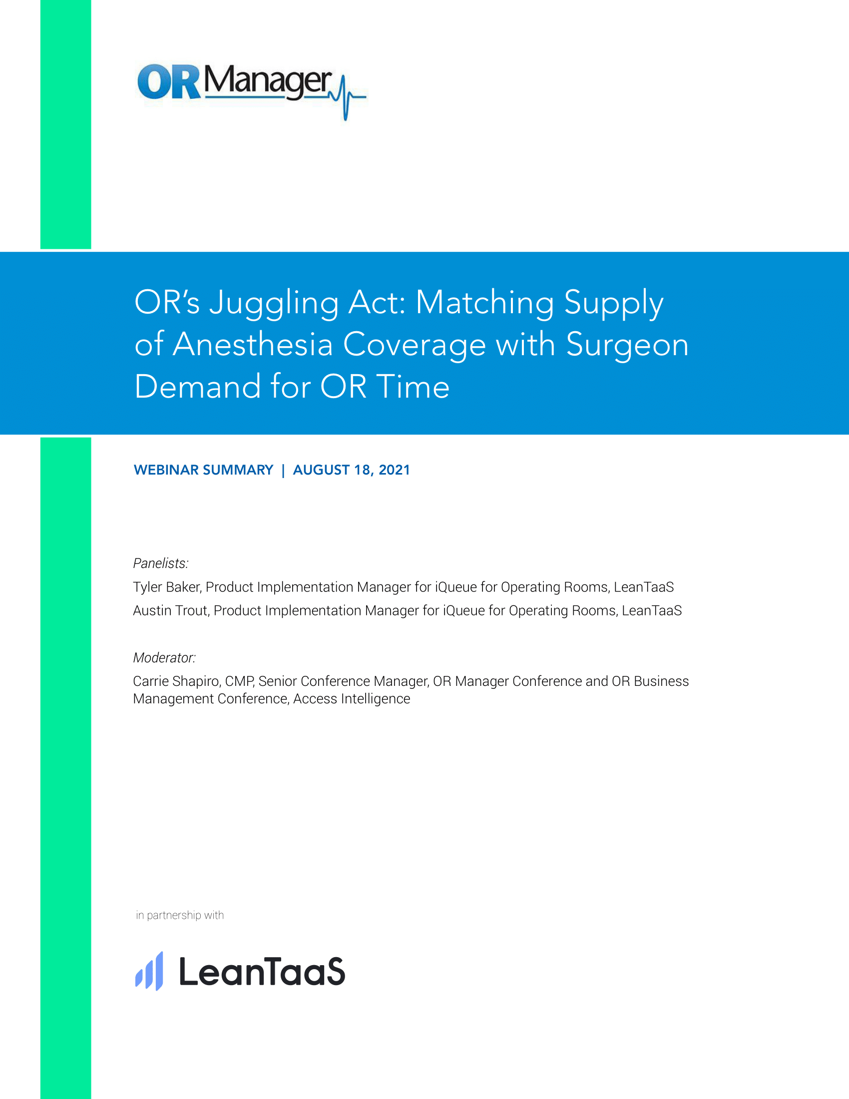 OR’s Juggling Act: Matching Supply of Anesthesia Coverage with Surgeon Demand for OR Time
