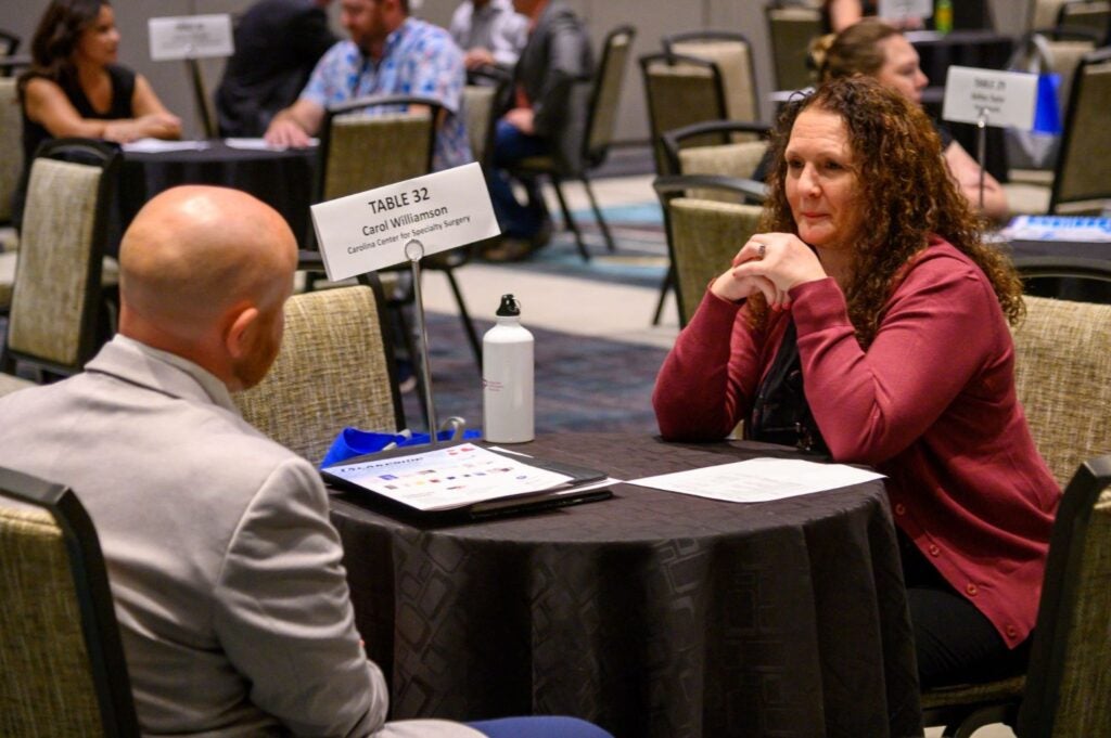 The 8-minute “speed dating for business” style meetings are face-to-face, and save you hours of time that would normally be spend in Zoom meetings or demonstrations during the work week. Following on Monday and Tuesday, you can visit with the exhibitors for further discussion and demonstration during Periop Networking & Innovation Hall hours.