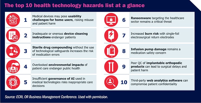 What is the purpose of the top 10 health technology hazards list, released every year by ECRI? “Our number one goal at ECRI is to reduce preventable harm,” stresses Jason Launders, MSC, former director of operations, device evaluation, at ECRI. “We know that every healthcare provider has a lot they…