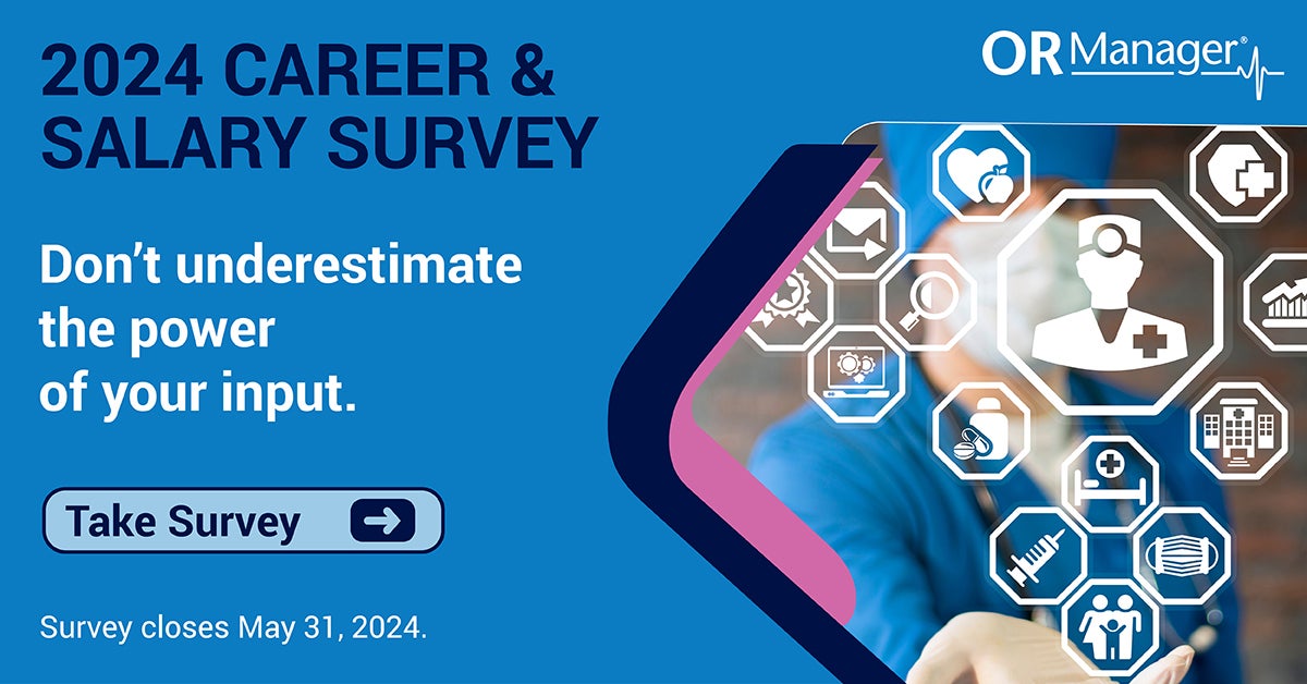 Editor's Note Although perioperative leaders are busy people, there are plenty of good reasons to set aside 15 minutes to participate in the annual OR Manager Career/Salary survey. One example is satisfaction of contributing to perioperative education. As demonstrated by recent coverage, the survey yields useful, actionable insights made possible…